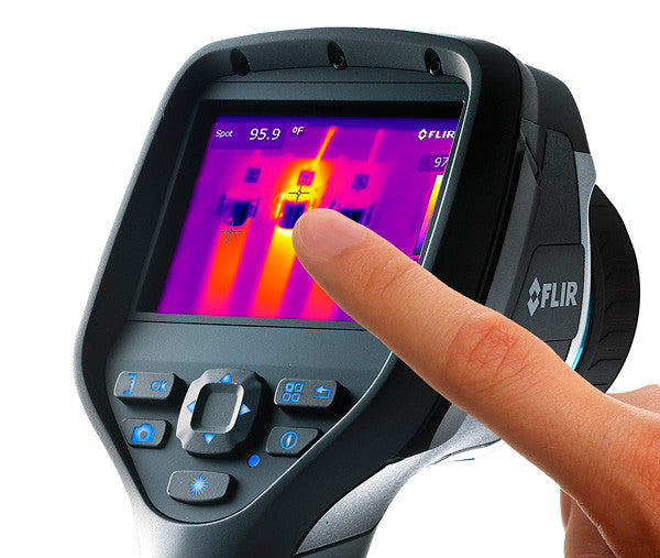 The FLIR E60 features a 320 x 240 pixel sensor with 76,800 detection points which updates at 60Hz and delivers temperature measurement with <0.05°C thermal sensitivity and 2% accuracy. It features one temperature range suitable for building inspection applications from -4°F to 1,202°F (-20°C to 660°C)Hardware